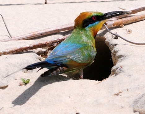 Rainbow Bee Eater building a nest on the beach at Inskip Point QLD