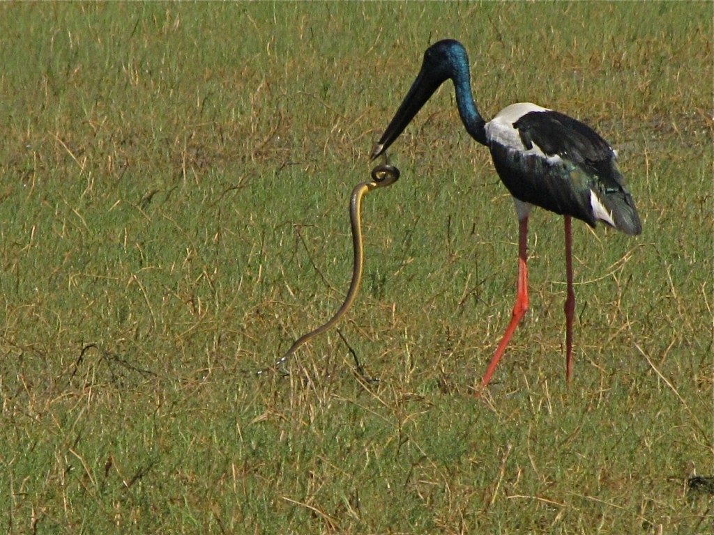 Jabiru with snake