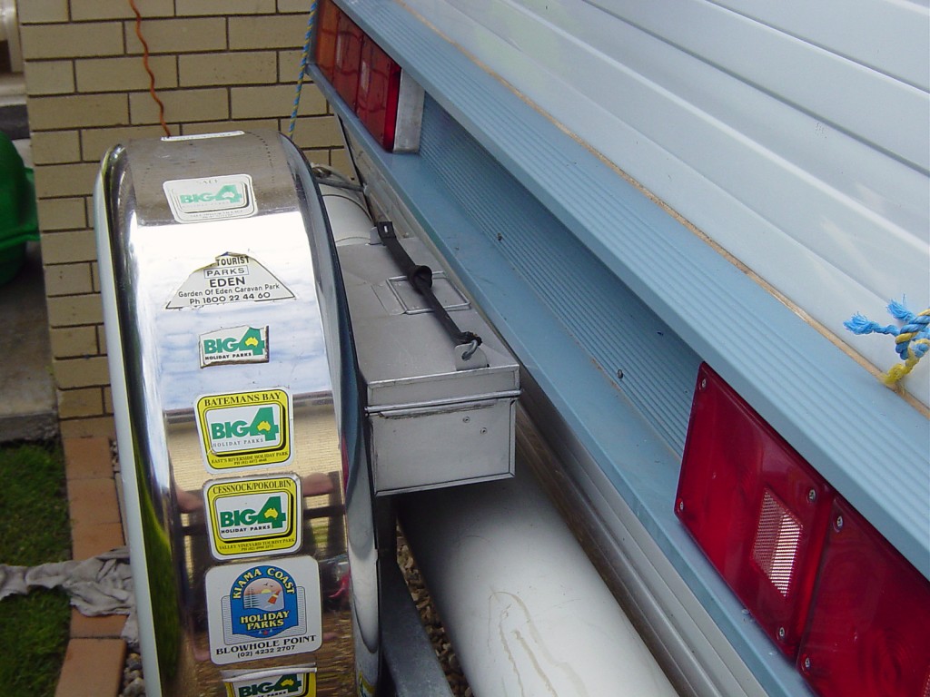 To finish the job, I installed a tool box (made by my son as a high school project) behind the spare tyre. It holds all the joinres & plumbing fittings plus cheap pairs of long nose pliers & vice grips, for those hard to undo clip lock fittings. See pic attached