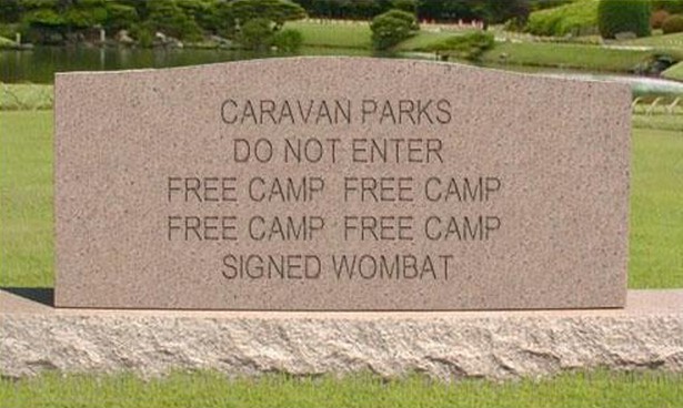 The last time I stayed in a caravan jail was for a caravan forum get together in 2011 and was ready to leave on the second day. Never again as I like my space out in the bush and I hate sitting outside my bus and cant cook my meals and RULEEES by the dozen and stepping on Doggee Pooo etc.