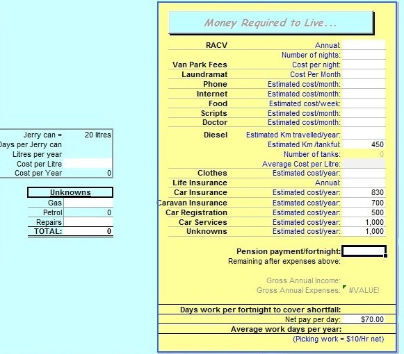 I am trying to see how much you need , per week, to survive on the road.I have some super, but not enough. I know that some GNs do it on the pension, but it looks like I won,t get one til 66, so I,ll have to work, some. Luckily, I have some saleable skills.If you don,t mind, How much do you spend? Bill
