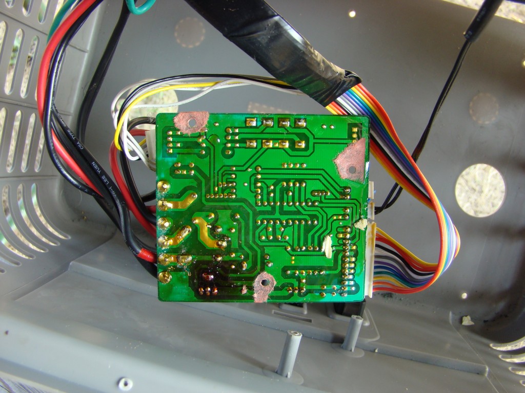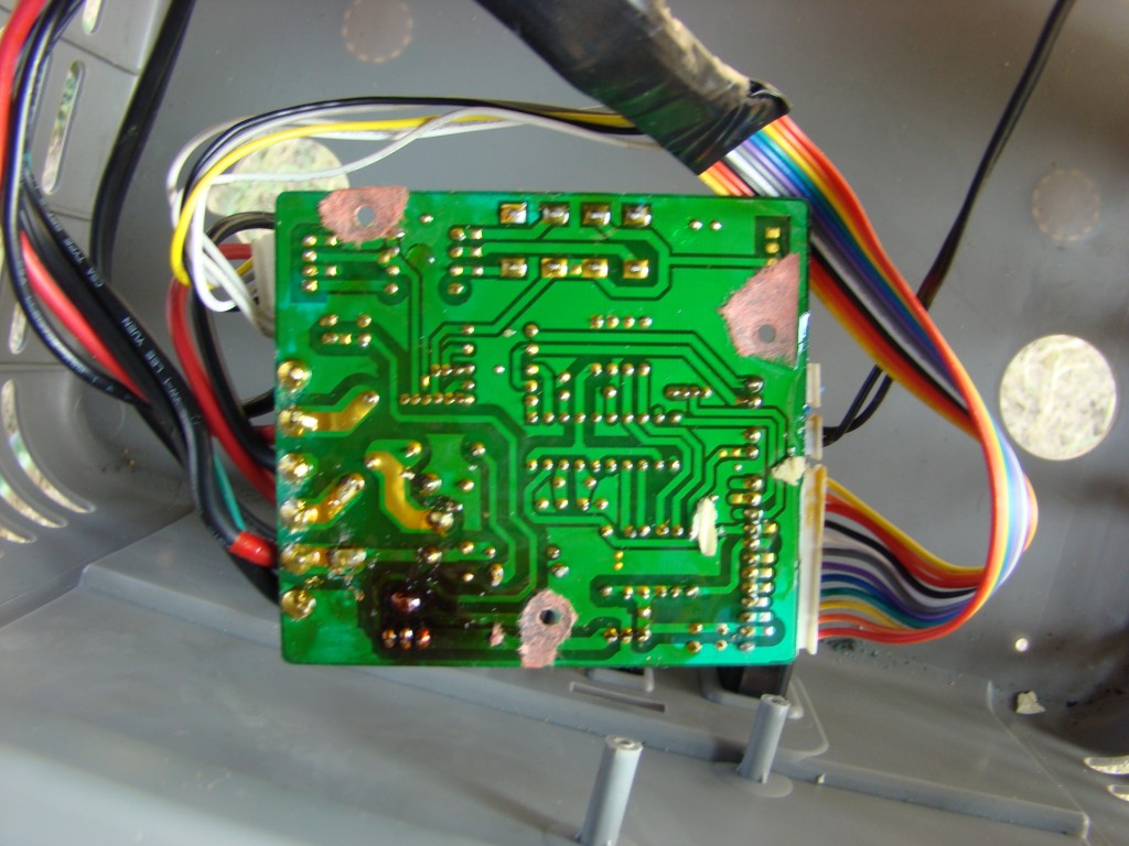 I have attached the pictures...the back has a discolored portion right behind where the power leads come in, but though the picture doesn't show it well, there really doesn't llok to be a break in the circuit. I've also attached a picture of the power supply, but again, I am reading 26 volts to the board.