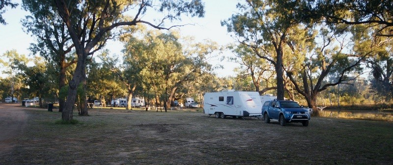 The freecamp by Jordan River is very pleasant; we stayed there mid-June. There are fairly well-kept toilet facilities, external shower (I think just cold water), comfortable walk to town. enough room for most rigs although not a huge area. Was one of our favourite stops in central Qld. Here are a couple of pics..