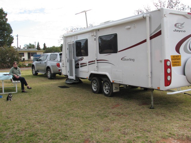 Hi everyone we are at Goolgowi, NSW - we had a nice drive up from Moama through Hay, not much traffic, bit overcast but not cold, no rain. We got to Goolgowi park, no attendant - we were the first to arrive at about 2.15pm and then there was three more vans. Nice grass site all ammenities although the wife is going to use ours, o' well. The council attendant arrived at about 5.30pm and for $18.00 not bad. Apparently this is the last week this park will be operating, they are going to develope it for housing, a new park will open next week (suppose to be Monday 20th Aug) near the RSL and run by the RSL, not Council so expect a price rise. The couple next to us are from South Australia and had there own winery so they supplied the wine for happy hour, not being a wine person the wife said it was very nice. Don't know if we will stay another day as we are only 31/2 - 4 hrs from Cobar so will see what happens in the morning, not in any hurry although it is suppose to rain here thursday, what day is it again?.