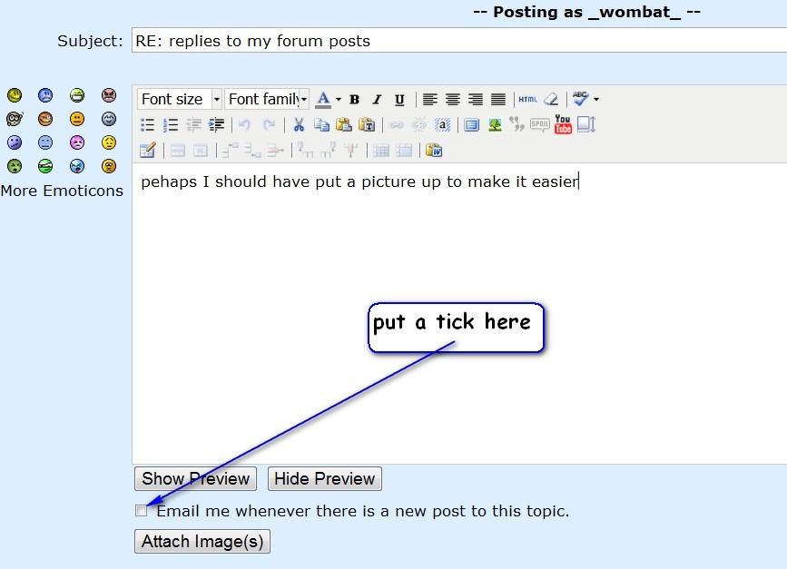 And if you open someone's else's post, and you would like to receive email advice of any new posts to this topic, you can always "subscribe" by clicking the SUBSCRIBE button - on the bottom right of the post. See pic attached.
