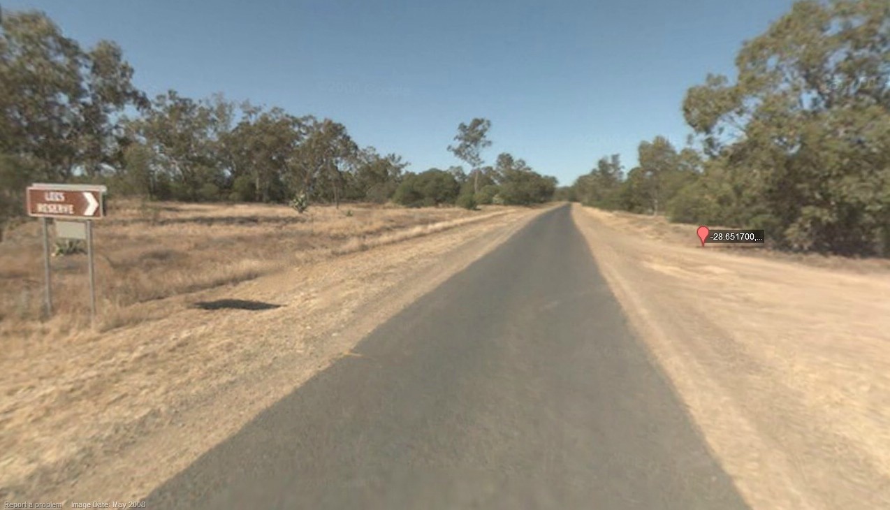 The co-ords for it are -28.6517,150.563 which work in Google maps (which are where I created the pics from). The last pic shows there is actually a brown sign on the road.