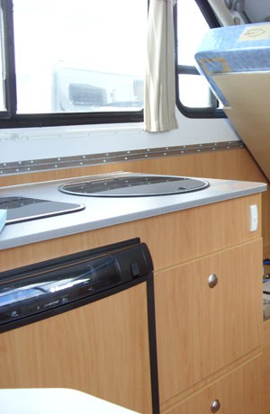 Fully insulated for all season comfort Tinted windows & curtains Auxiliary battery pack with charger Full 12 volt power supply 90 Litre 3-way Fridge Two-burner Cooktop Large dome over lounge Twin Roof vents Deluxe floor coverings Earth leakage protection Fire extinguisher