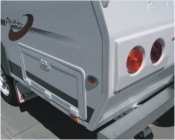 Hot-dipped galvanized Centurion Chassis Super-Strength Smooth Panel Construction Effortless spring-assisted setup in 30 seconds Low profile for easy towing Two-piece arched entry door Lifetime anodized aluminium extrusions One-piece flooring (no butt joins) 2 x 4 kg gas bottles and regulator Sports wheels Mounted spare wheel & cover Lockable side wall mains water connection 63 litre water storage tank 100mm storage bumper Swing-up jockey wheel Electric brakes Independent suspension & gas-assisted shocks 240volt external power point External baggage door Step light