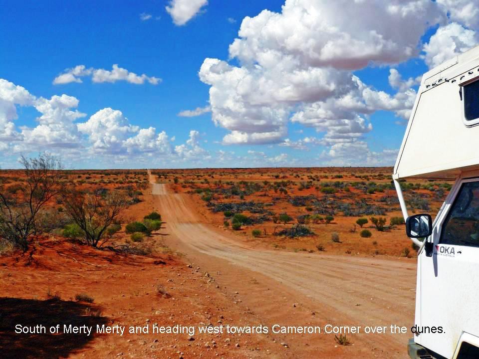 In April this year we did the dirt road from Condobolin to Cobar, Cobar to White Cliffs, White Cliffs to Tibooburra, Tibooburra to Cameron Corner via Fort Grey, Cameron Corner to Merty Merty, Merty Merty to Innamincka via the old Strzelecki track, Innamincka to Dig Tree, Dig Tree to Noccundra and then back down to Tibooburra. From Tibooburra we went down the "Silver City Highway" to Packsaddle and on to Broken Hill.