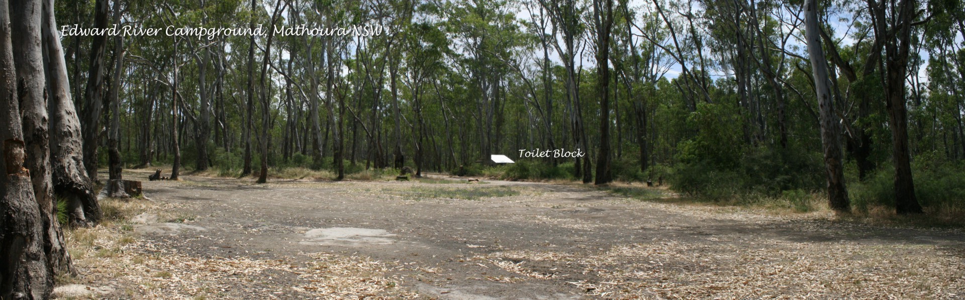 Camps6 NSW site 535. From Mathoura, take Jones Road onto Picnic Point Road for approx 5km to Millewa Road (just past the Reed Bed Bird Hide sign), then turn left for approx 2.5km along a very good dirt road to the Picnic Area and Campground. Drive past the day-use area along the well formed dirt road. There are two cleared camp areas on the right and another on the left. Continue to the right, past the toilets and the road ends at the final campground. All four camping areas are about the same size.
