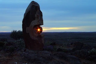 That's a clever photo Mike C! Well timed getting the sun through the hole in the sculpture. We saw the most beautiful Sturt Desert peas in this park.
