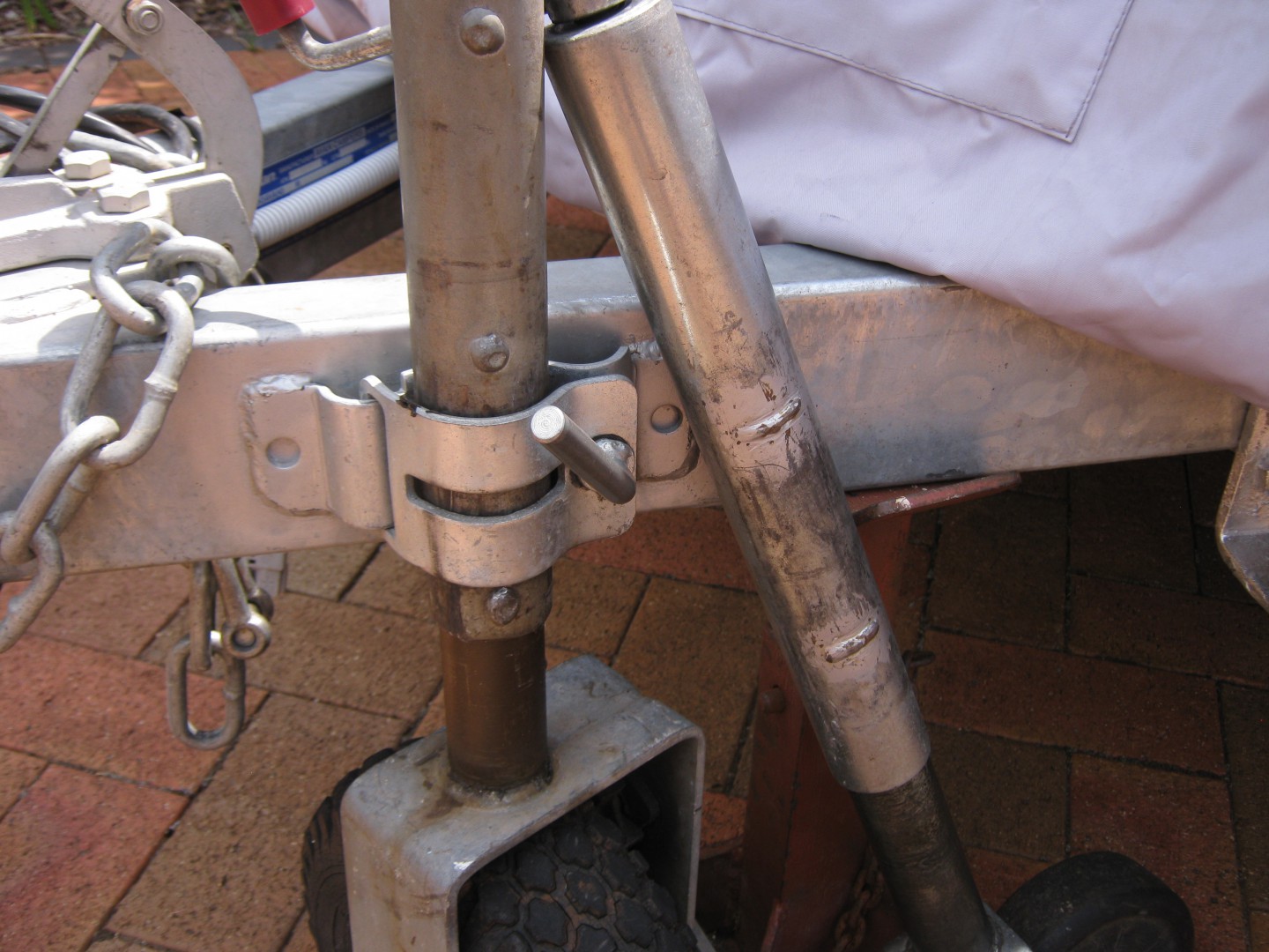Thanks for the replies - clamp was tight in the picture but I noticed this morning when I double checked that the threaded end of the screw is touching the A frame. I'll grind that off and use the centre slot of the clamp - was never sure where to actually put it. The jockey wheel on the right is fractionally smaller than the other - I may fabricate a sleeve to fit over the tube to enlarge it and see how it goes. Thanks again.