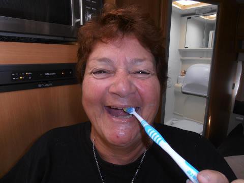 My traveling companion is my mother,,,,wot is the protocol here,,,r we a, couple !!! or!!! as Brett says, two single ppl traveling togeather,,,,,,,,,,STAY EXCITED PPL,,,,,,,,,,,,Billeeeeeee,,,,,PS, mom cleaning her teeth,,,,,soooooo sorry , forgot , she doesent have any teeth.......hehehe