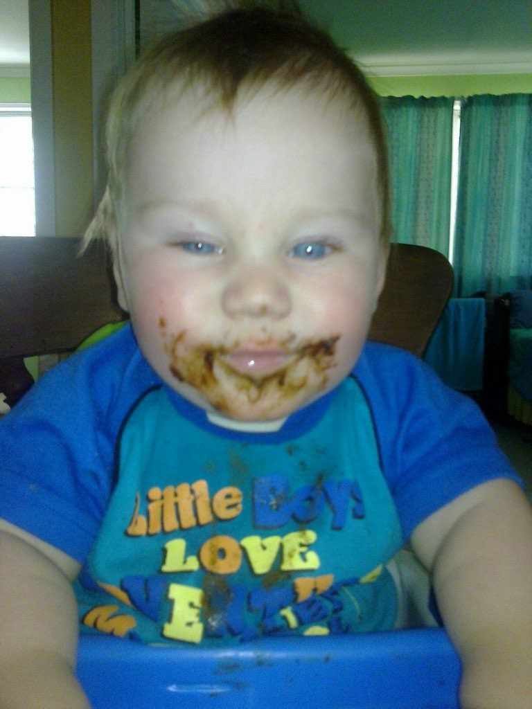 Here's a pic of grandson, Reece, eating a bit of choclate cake I made for him. He's a bit messy, just like grandpa. but is enjoying it. Bill