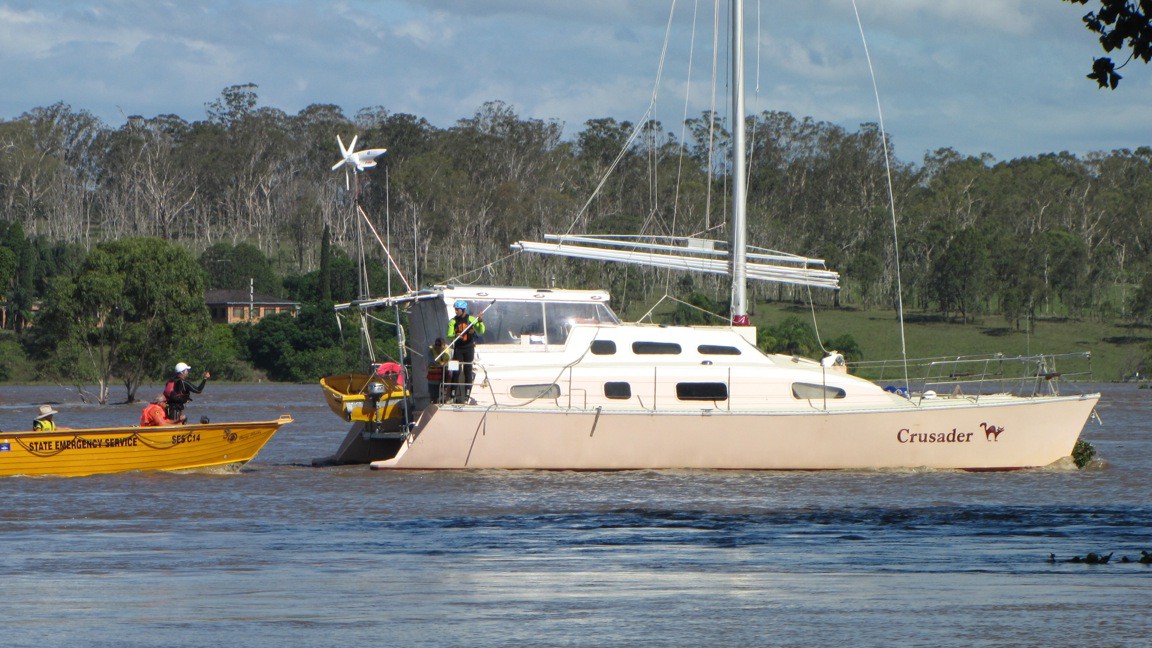 Actually the day after they got rescued they were worried about the anchor coming loose & the catamaran being washed down the river and into the main electricity power lines that cross over the river. The high mast made it under a few weeks ago but with the higher water level it would have hit and dragged the lines into the water.