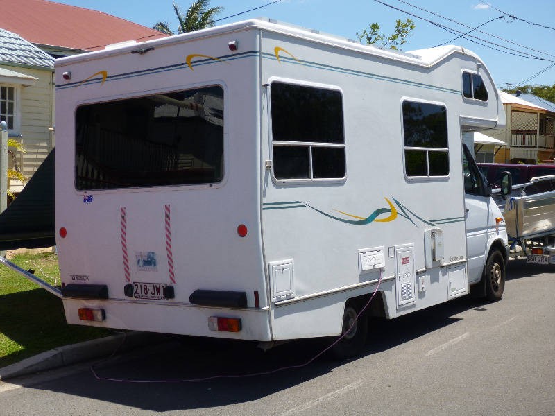 I noticed some rust around the awning mount, sure enough when I undid the two top bolts the awning just fell away, there being a large rust hole under the fixing. So cut out the rust, treated the area with rust killer, applied some good metal filler and primer then a few top coats.