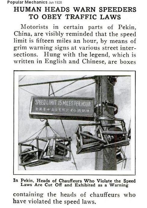 Thanks goodness thing have moved on in China since 1928, they may still be tough on lawbreakers but I doubt they would do that for speeders today....