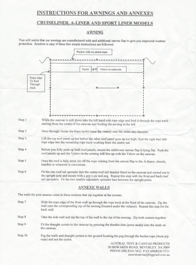 For Aliner owners ,here are the Installation Instructions for you awning, Hans