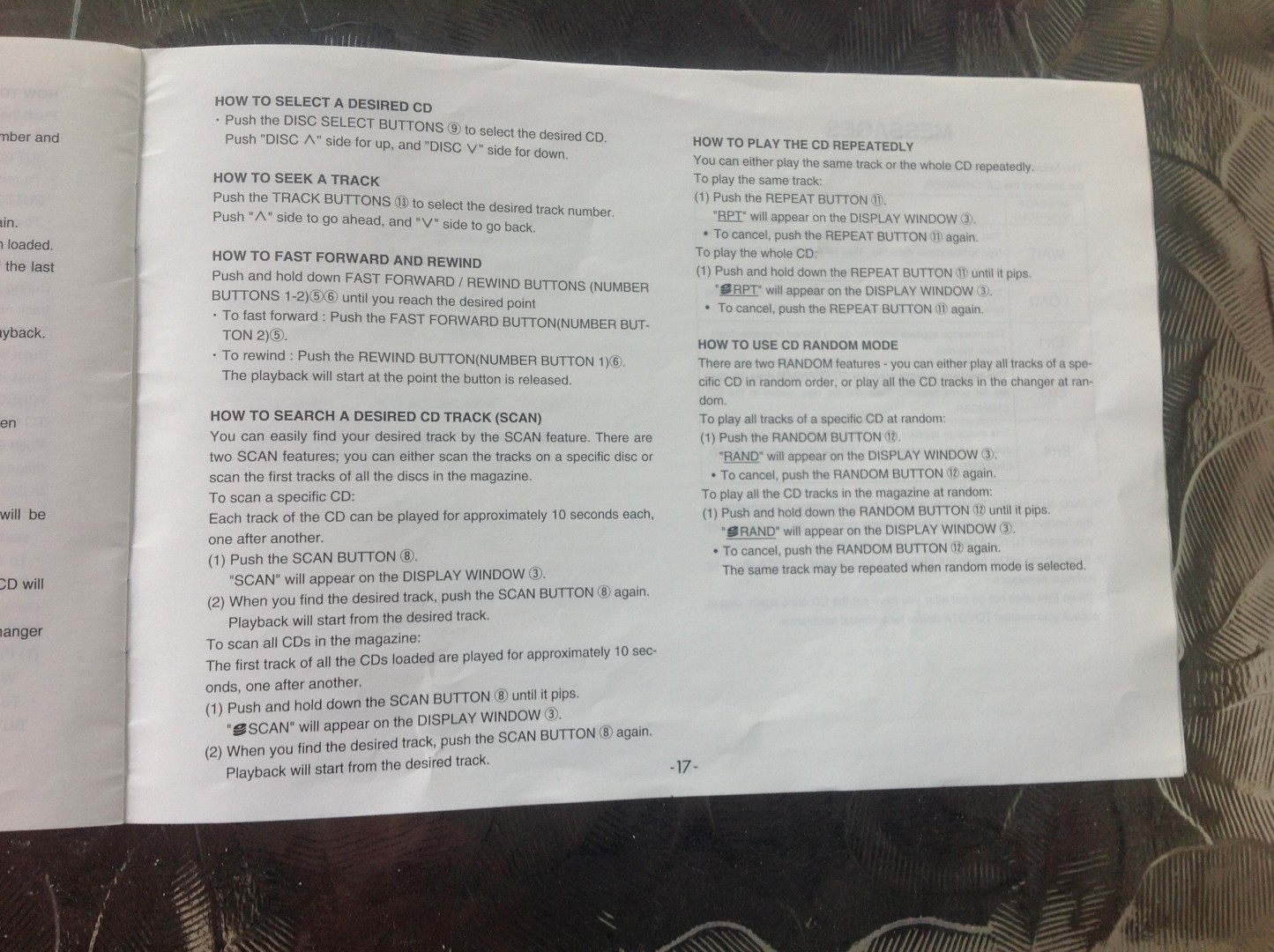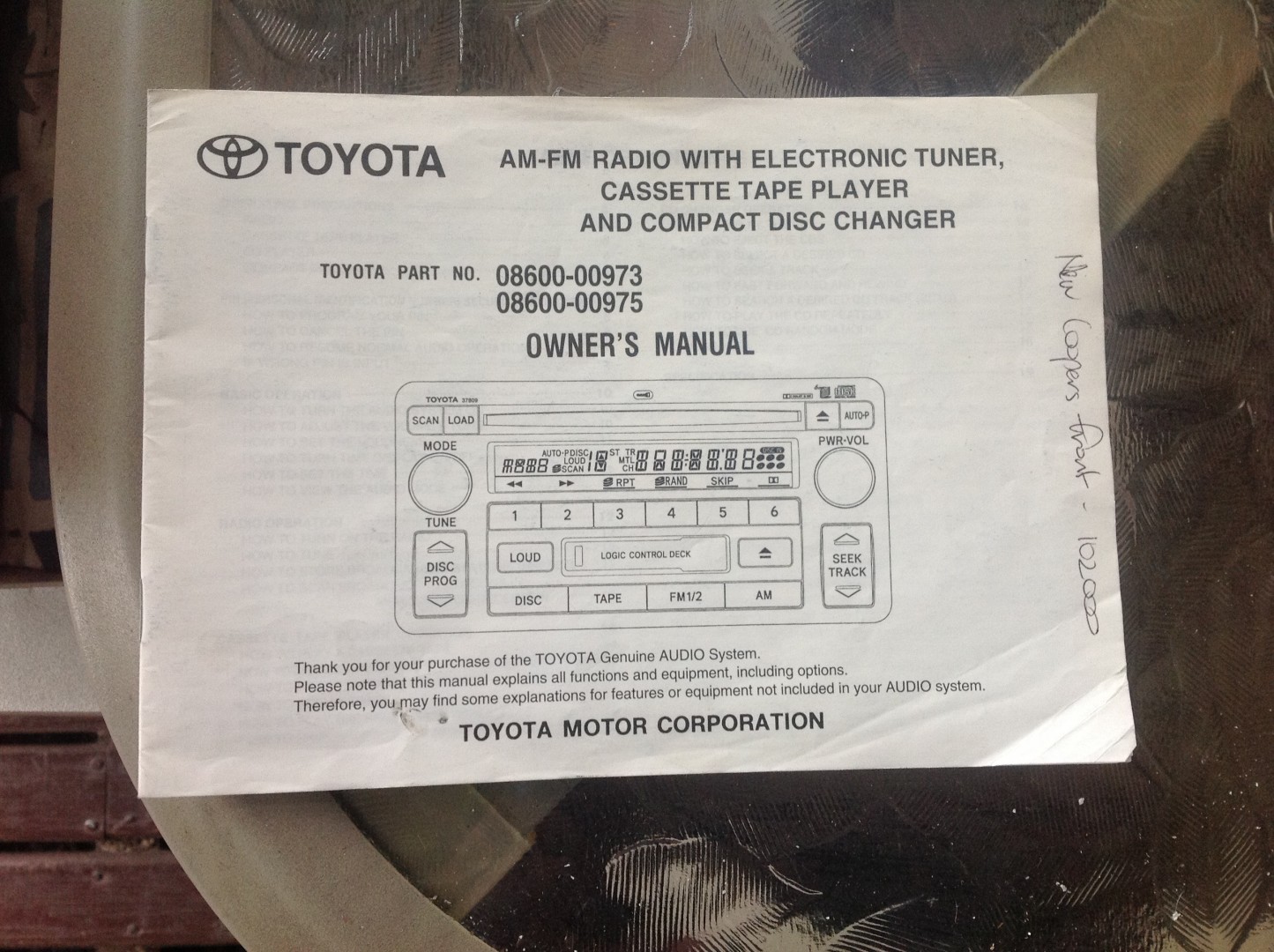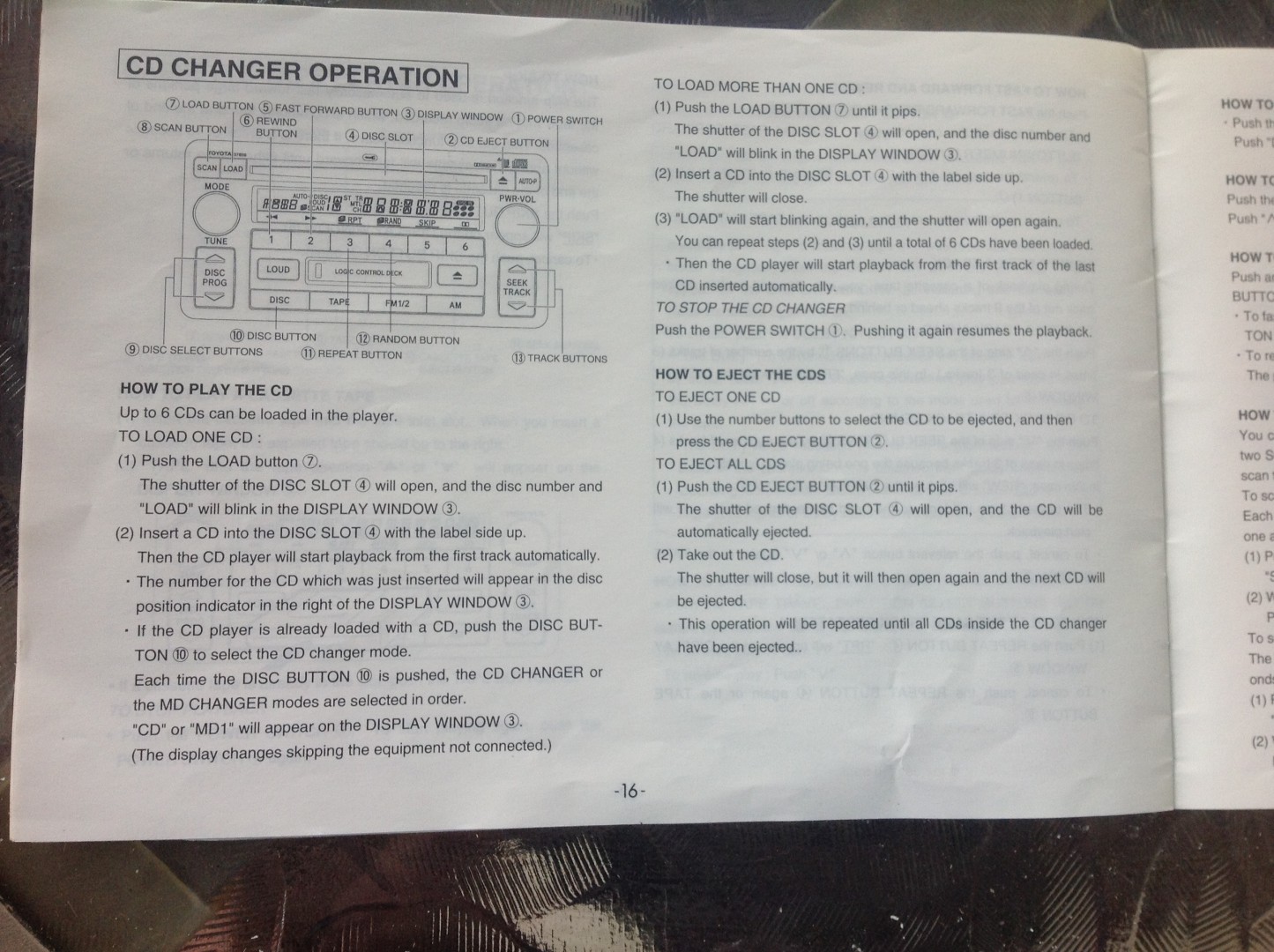 We have a 2001 Toyota Prado (diesel), it has its original radio/5 CD stacker player. The radio works fine...but when we put one CD in it it won't play it, its like it still waiting....we don't have the intruction booklet for this, and there is nothing in the cars manual thing, other than telling you what its called