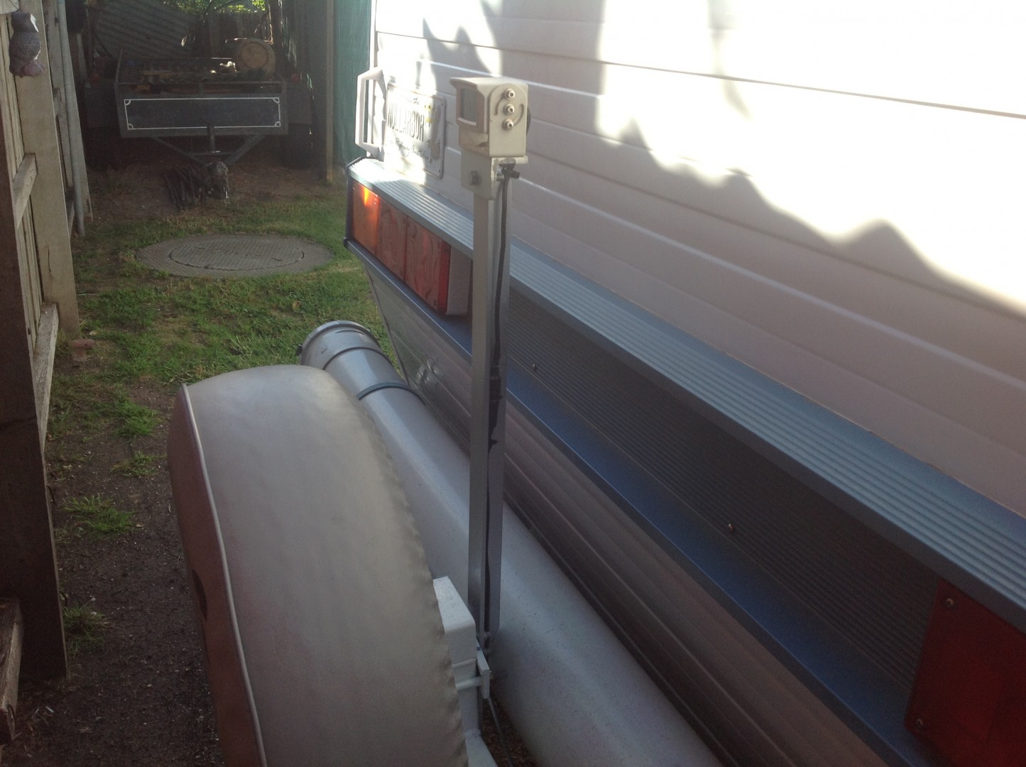 Could have used one today, backing the van into the garage I hit the wall. Just for fun it'd be cool to put a monitor on the back and the camera on the dash so they can see when it's safe to overtake.