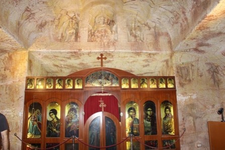On across an extremely dry bare desert area to see the dog fence and back to town for the museum and its underground house and tunnel system, then to the Serbian underground church.