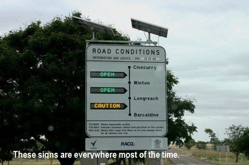 I also saw my first 2 and 3 trailer Road Trains Tuesday and a large truck with pilots moving a rather large piece of farming machinery, it took up both sides of the road and I had to move of the black stuff completely so they could get past, no problem as I heard them on the CB and then saw them shortly after so had heaps of time to get out of the way, but wow was it big, they grow them big out here.
