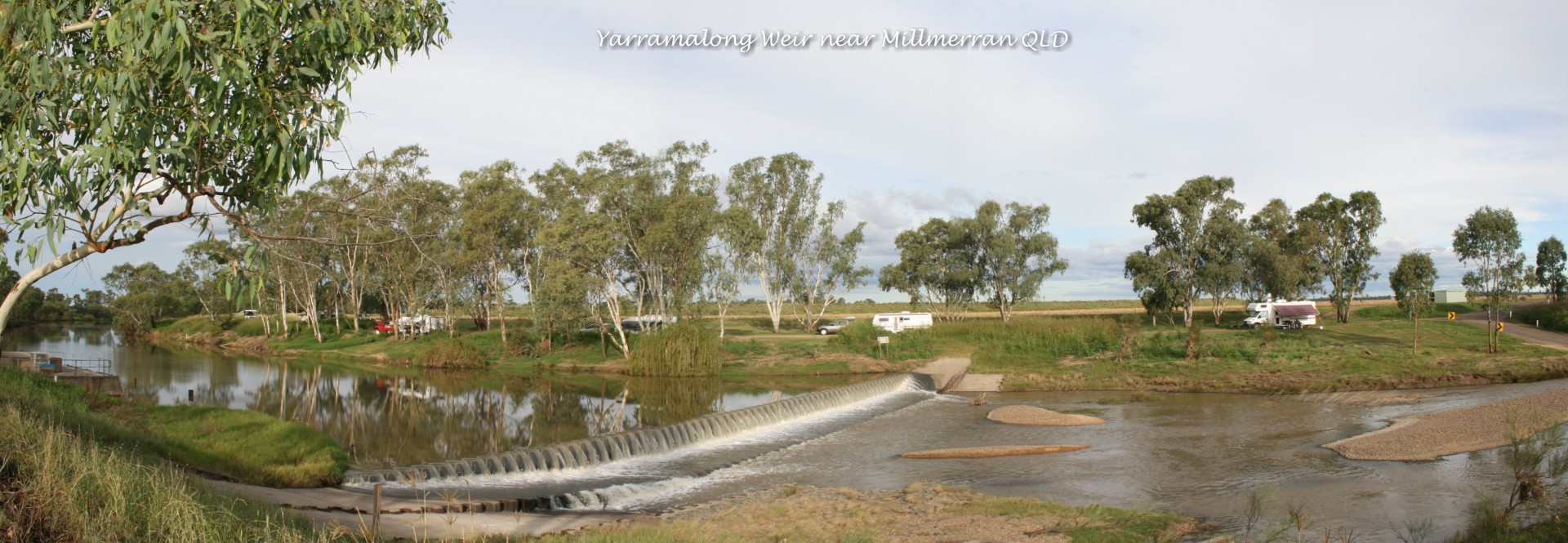 Yarramalong Weir - Camps 6 QLD site 762 - 27 50 07 S 151 27 02 E - 11km north of Millmerran (33km south of Pittsworth) off Gore Hwy, turn east on Leyburn/Millmerran Road for 11km then turn north for 3km to Weir - signposted. Three night limit (no fee) with flushing toilets, which are fairly new and in good condition. The Condamine River has had floods in recent times and there is evidence of the damage, but the camp area is in good nick.