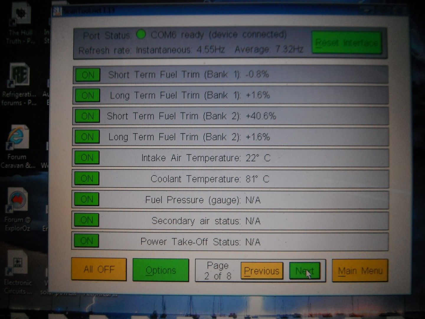 Screen pictures of a BA Falcon. First is the inst panel, 2nd is screen shot of KOEO (key on engine off), next 3 are KOER (key on engine run).