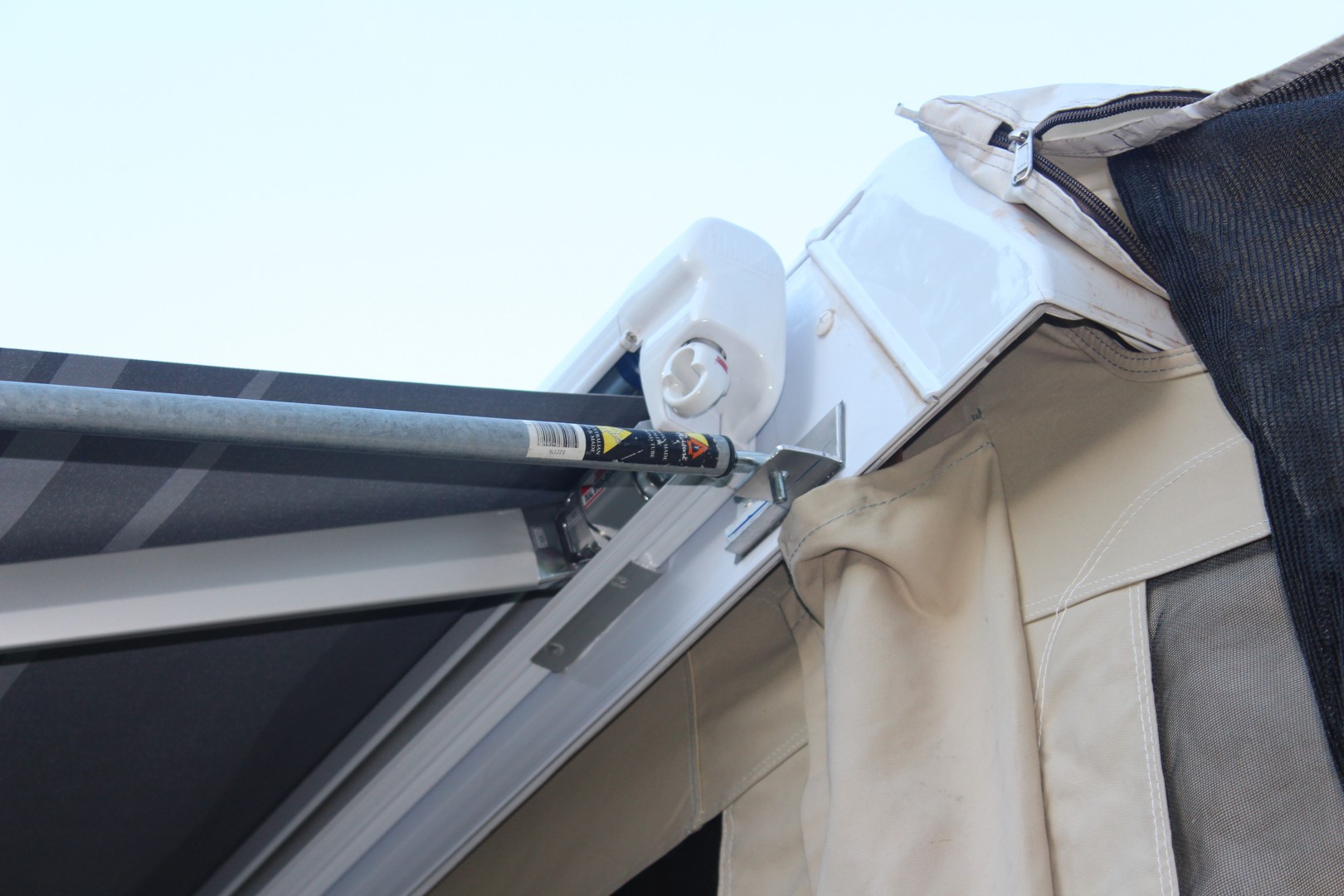For this we contacted the canvas maker in Maroochydore and he tailored an end to suit, complete with attaching clamps to fit onto the Fiamma awning.