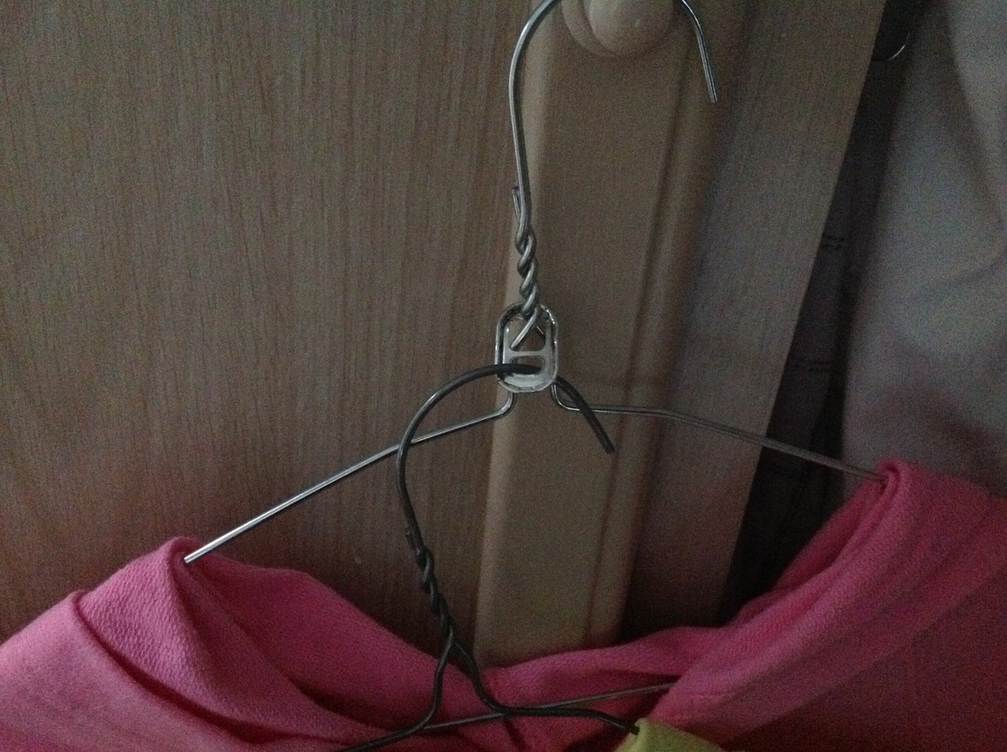 A handy idea for space saving in the wardrobe is with your hangers ,get the zip top lever of your beer cans or soft drink cans and put one lever on the first hanger ,hook it over the hook and then hook your next hanger on the can lever that is on the first hanger and keep going until you have enough,that way they are hanging down on each other, then start another row.