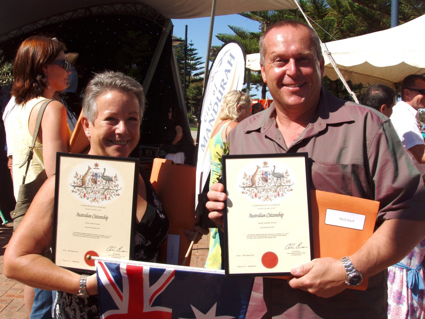 G'day Mark and Linda. Nice first post and no spelling mistakes that I could see. I think you'll fit in quite well on the forums and I look forward to hearing about your adventures. Congrats on the citizenships. I got mine with a smack on the bum.