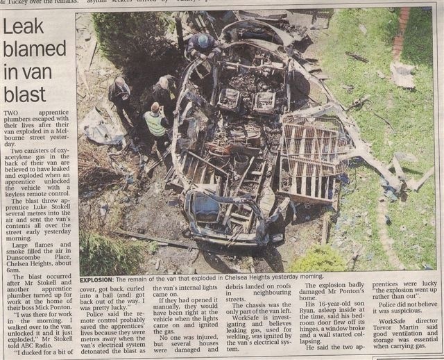 Couldn't agree with you more Ashley. Flammable gasses need to be stored in places where there is plenty of ventilation and where the gas cannot accumulate. The attachment shows what can happen when these rules are not followed - and this was caused by the use of the keyless entry of the van door imagine this was your van or motorhome and it was you lighting up the stove to boil a kettle.