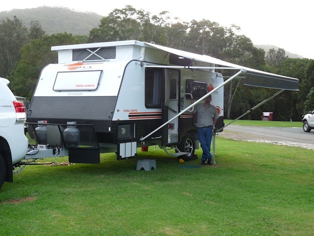 Thought I would share some photos of our new rig (some taken with the top down). We still have the 2011 Toyota Prado 150 SX (3 door) but have sold the 2006/7 Jayco Destiny Outback Pop-Top and purchased a new Nova Terra Sportz 16679-9 Pop-Top. It comes with 2 x 100 A/Hr batteries, 120W solar panel, 2 x 80 litre water tanks, independent suspension (I chose cruisemaster), 2 x 9kg gas bottles and Hitchmaster DO35 coupling. I also added RV Air Lifters, a grab handle in the shower, Fiamma security handle, a sail track on offside and a stone d-flector.