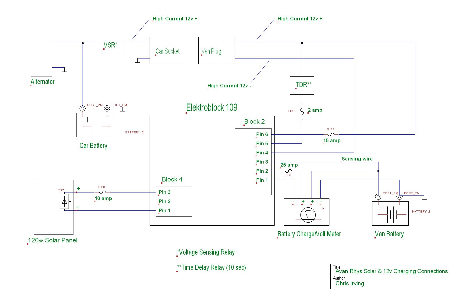 I was so frustrated with the appalling lack of support from Avan regarding this - and any electrical - issue, I contacted an Elektroblock service company in the UK called A&N Caravan Services who were fantastic. A very knowledgeable guy by the name of Allan Evans sent me schematics etc. which answered all my questions about this DC charging issue. Here is the schematic https://mail.google.com/mail/u/0/?ui=2&ik=89d578c576&view=att&th=148c7f1d0323f3ec&attid=0.1&disp=inline&realattid=f_i0o4677i0&safe=1&zw which may be of some help. He also wrote a lot of instructions about the connections and strongly recommended I read their page about van batteries http://www.aandncaravanservices.co.uk/battery-technology.php which blew me away! Anyone who is grappling with this issue can contact me for further assistance anytime.