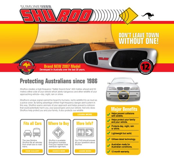 Shu Roos are the electronic verstions. WE have Hopper Stoppers, like the ones further down the thread. Have been using them for close to 20 years for both motor bike, sedan and now 4WD. Have never yet hit a roo. Have seen them stop on the side of the road and watch us pass.