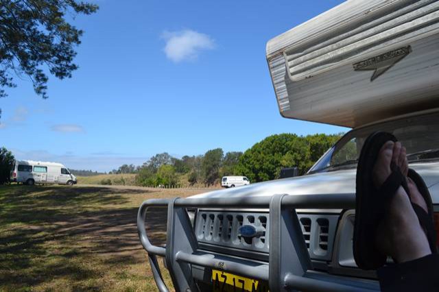 Yep, finally hit the road, all 17kms of it to Wingham Brush on my first shakedown in PJ. First night was a bit of a kerfuffle but it got better after that. Main prob at the mo is my lack of stamina caused by a few medical issues - special diet, no teeth, etc. But things are improving slowly and I'm looking forward to becoming a fully fledged nomad eventually. Here's a sample pic... me practicing my camping technique. You'll find a bunch of pics of my first foray into life on the road here.
