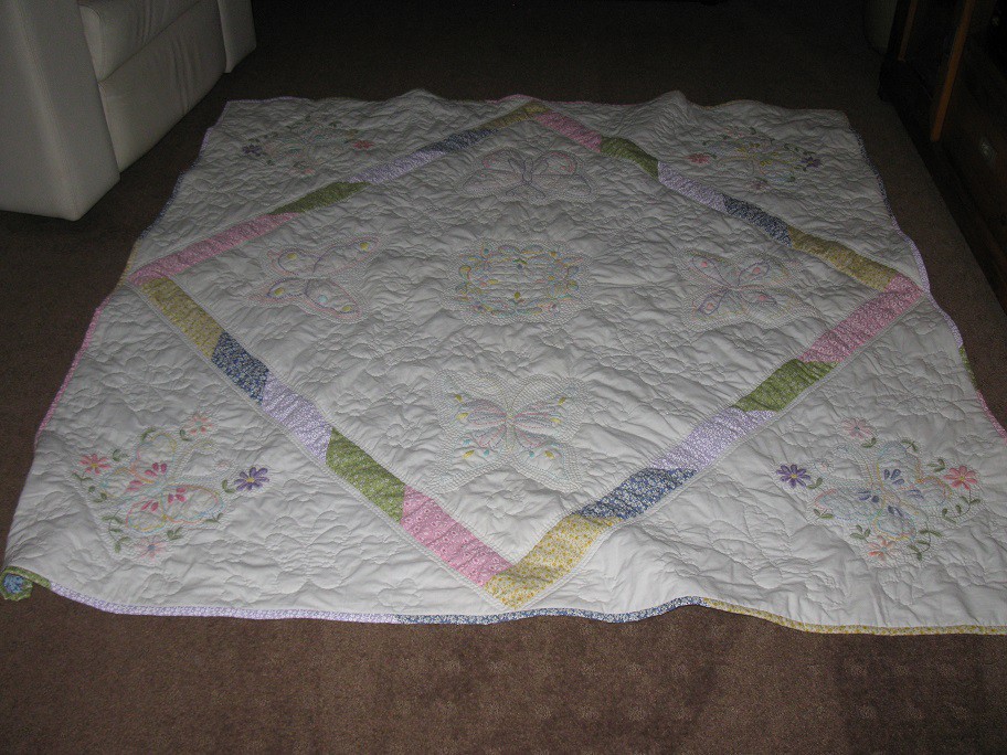 Particularly attracted to quilt number 2, love pink and green and the embroideries. Lots of hours on show there.