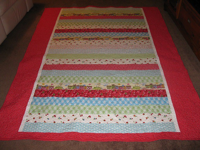 No Pam. It was mostly 30cm of fabric that the young mum chose under my 'guidance'. I had no idea what sort of pattern she wanted or whether I had estimated enough fabric but it worked out well. There was very little left. I would have given the quilt rounded corners too but I really didn't have enough fabric left to cut bias strips to do that.