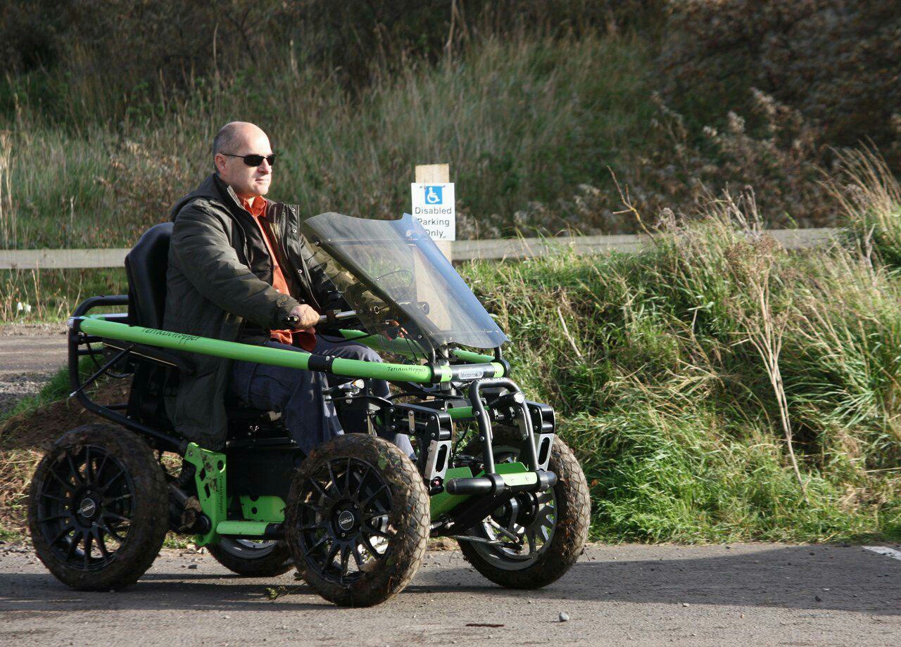 My friend Got run over by a truck when riding her motor cycle, She is paralyzed from the waist down, She started off with a wheel chair strapped to the back of the bike, With her B/Friend riding, I know this because I made the frame for it to sit on,