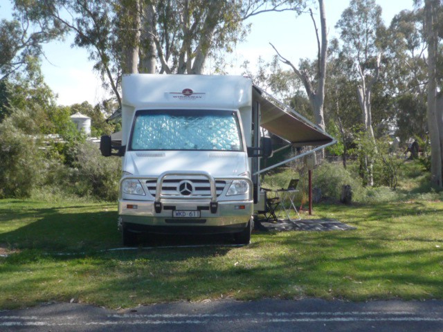 I have had a blast since hitting the road. One day I might even get around to updating my blog. Have not had time. Had four days free camping with friends at Warbutons Bridge, just out from Castlemaine. Lovely setting, fire pits, new drop toilet, quiet, and grassed. Lots of wild life and just a wonderful time had by all. Went onto Bendigo and booked into the Big 4 at Epsom, another quiet place, family setup but it is a smaller park so not so noisy, had a lovely time there with the families camped next to me. They go there every year and invited me to join them for happy hour, and hey who am I to disappoint and say no. Really nice people and they then invited me to join them for cup day, it was a toss up wether to stay or go to Greens Lake. Hmmmm, decided the latter was the way to go. I don't think Miss Daisy was happy though as she would not allow me to roll her water hose in completely so I got cross with her and she had to have bits dangling in the locker instead of on the reel.