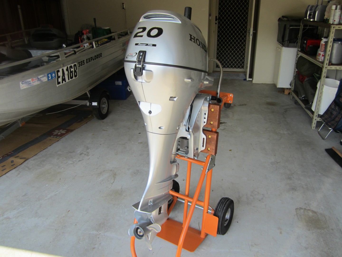 These are photos of a trolley stand i pick up at Super-cheap and convected into an outboard motor stand for approx, $60.00 all up