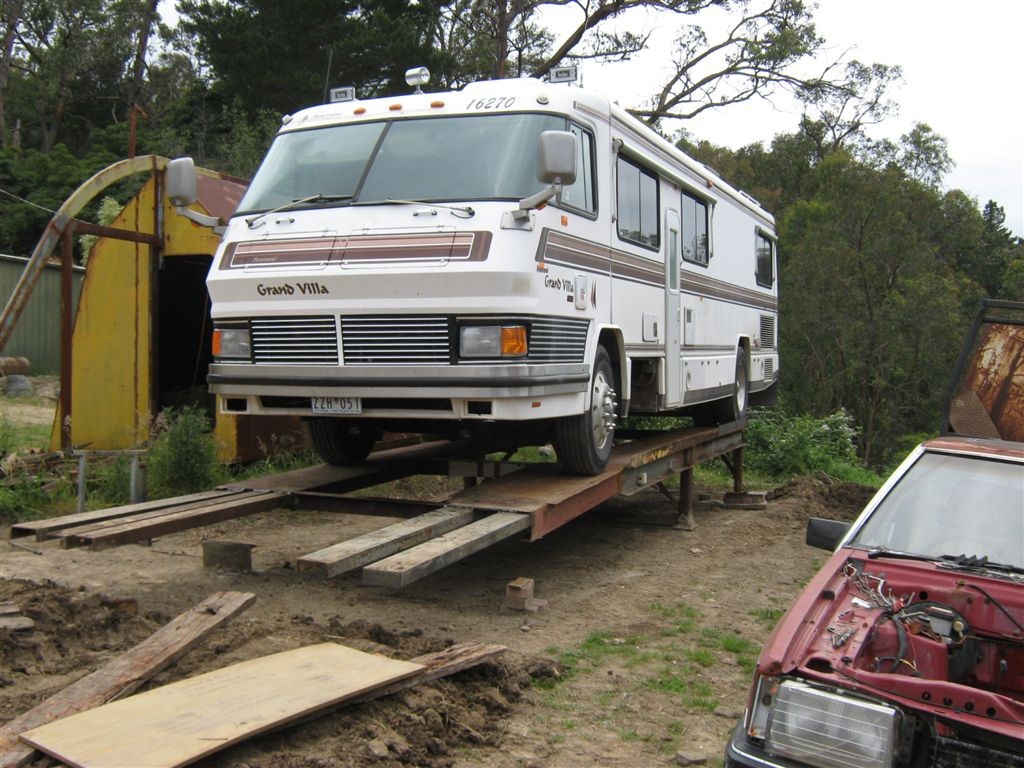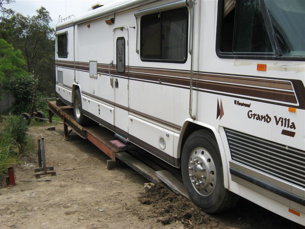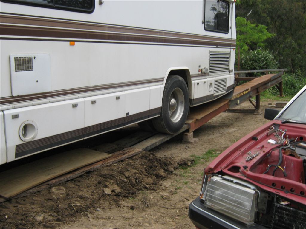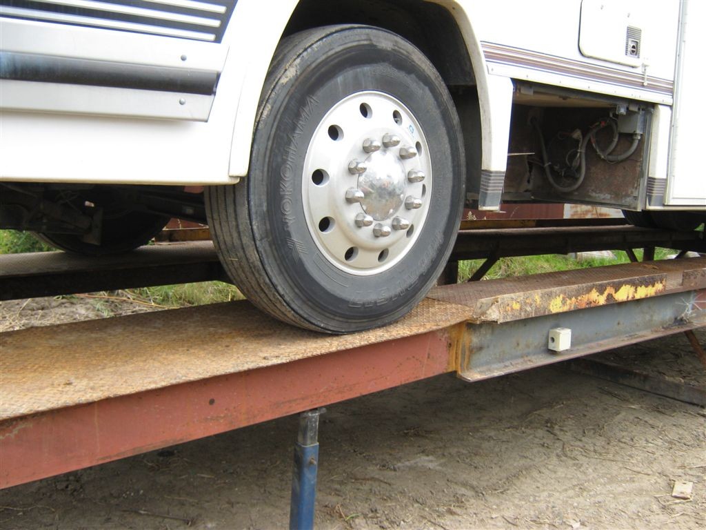 First mistake, Its a diesel pusher, All the weight is behind the rear axle, So to make my ramps work now, it has to be backed onto the ramps,