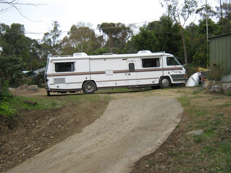 I ended up building dirt ramps so the ground was raised up a bit allowing the Coach to finally back on and all the way to the stoppers,