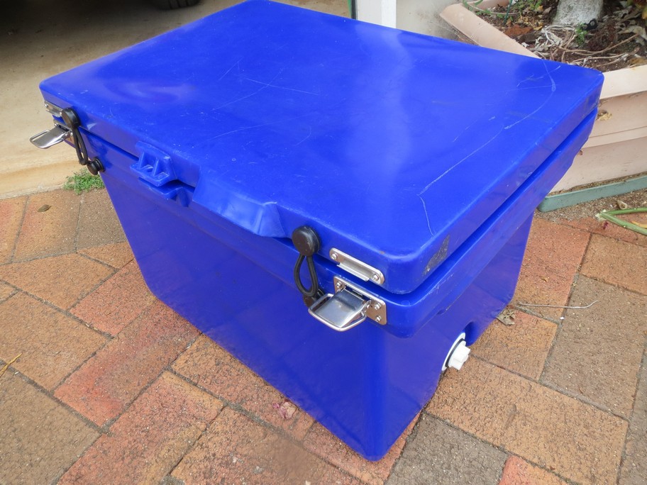 I had another thought - I could make a 'slip over the top' box - like a sewing machine or water pump cover with no bottom. Make the top from 5 ply the exact shape of the esky lid and then sides of 3 ply. Take the sides down to about 20mm of the dirt. Paint the lot white. Then I'd have the white colour plus the airgap insulation. To get a beer out I'd lift the cover off, sit the bag of king prawns that I have to remove to reach the beers at the bottom on the top of the cover, get the beer then replace the prawns. This would keep the prawns or more likely sausages out of the dirt. Hang on, if I had prawns in there I'd keep them out anyway.