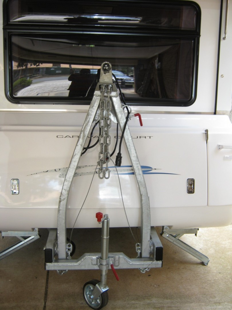 The folding A Frame is suitable for trailers / caravans with a gross mass weight of 3500 kg. Our van is well within these limits. The folding A Frame is is ideal when you have undercover limited storage at home like we do.