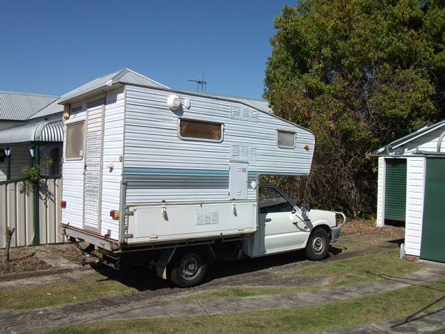 Must be an American version. They call them a slide "in". The ute is a twin cab with shorter tray. There's a receipt for an electrical wiring inspection of mine dated 1974. I think yours is a bit later, Bill. Yours has a backward sloping cab over.