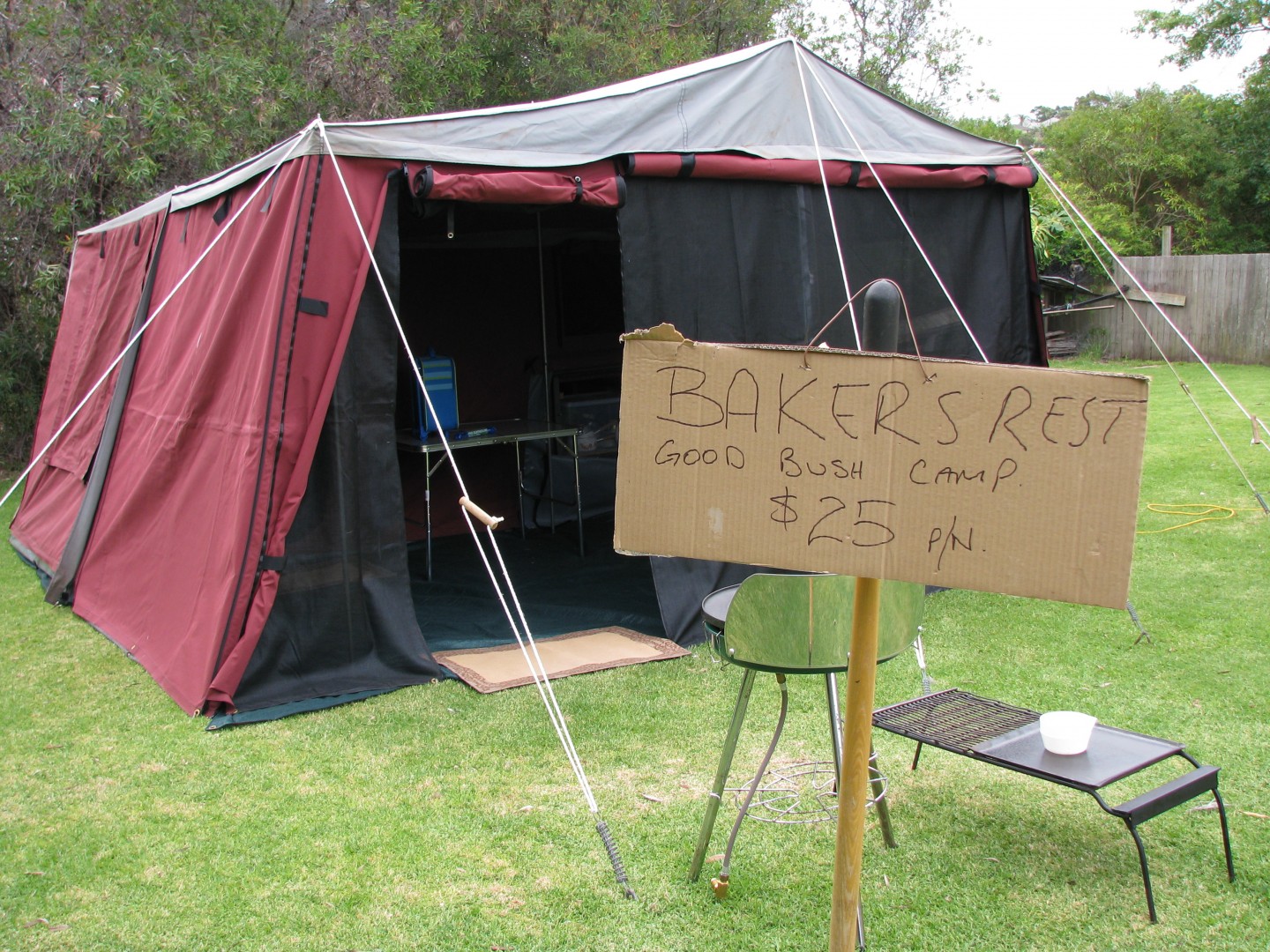 Well our eldest daughter and her husband and kids turned up today with their new camper trailer to stay in the back yard. So cheekily I put up a sign with the nights camping fee, with power of course