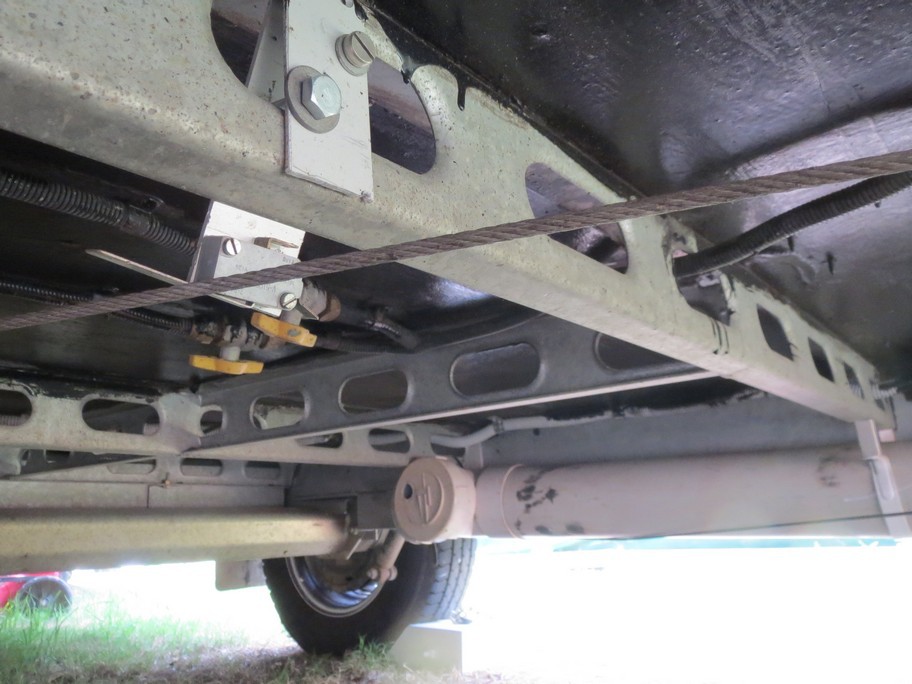 A quite simple caravan theft deterrent is to fit an alarm operated by the handbrake. First you have a hidden switch...could be anywhere outside the van. This switch is connected to the house battery, and a wire connects to a micro switch bolted to a chassis member that lies directly above the handbrake cable. This micro switch is turned on when handbrake is off, and on when handbrake is applied and cable is tight. The power then goes to a siren/horn hidden up under the watertank or somewhere hard to get to. How it works: Arrive at spot, select spot and park, handbrake is applied and hidden switch turned ON. Unhitch, level van etc. Anyone who wants to steal your van MUST release the handbrake which will release handbrake cable tension and activate the siren/horn. When you are ready to leave you simply flick the switch OFF. If you forget it will only take a second to remember...maybe a bit more to change your underpants. That's all....quite simple and no keys/codes to remember and made from basically junk. Hide the wiring as best you can. Attached pics are from when I started this instal - will give an idea of the micro switch etc. Good Luck.