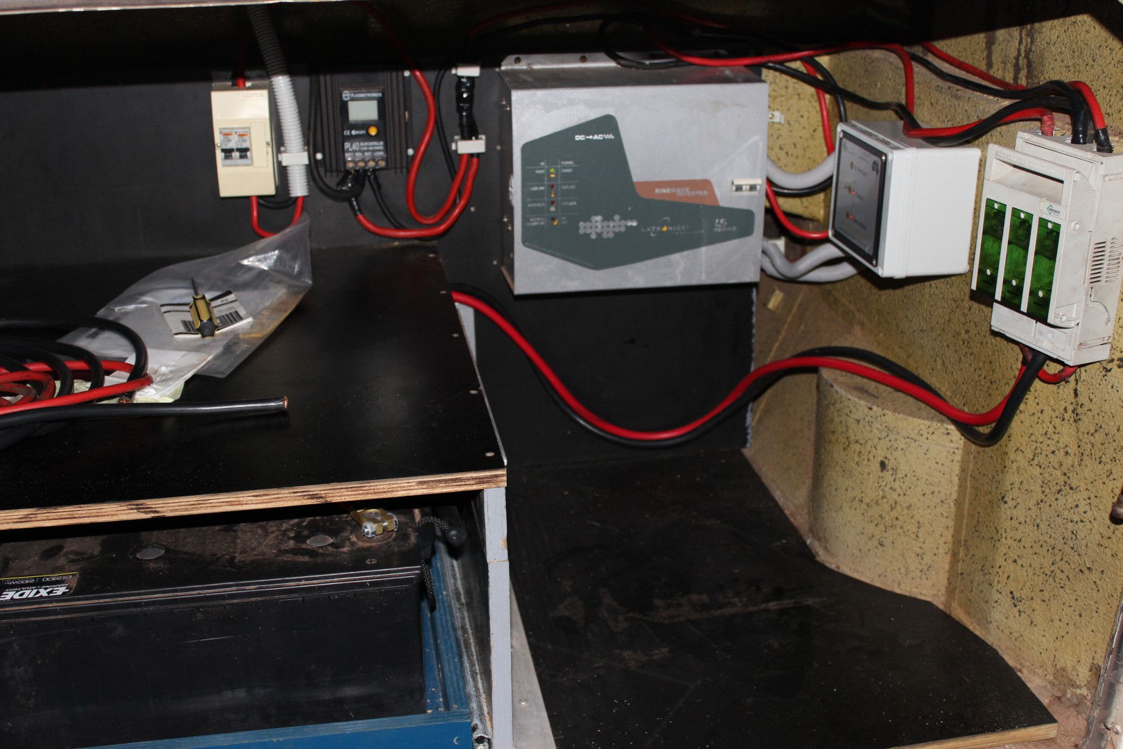 This means we can charge our transfer batteries and house batteries whilst travelling, then switch the 250w 24v panel to keep the start and transfer batteries charged when stopped, or keep them on the house system. All this operates on 3 way switches.