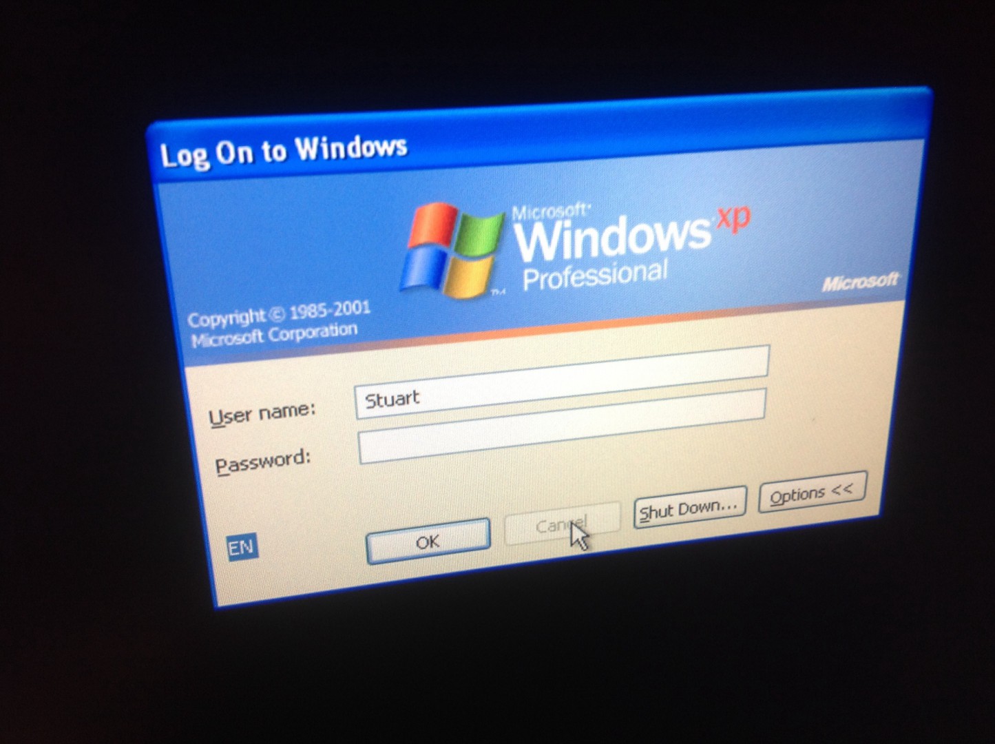 I haven't got a cancel option. It's a blue coloured windows box. It's pre populated with user name Stuart, under that it wants password. Only options are shutdown, restart, standby. I've tried all those